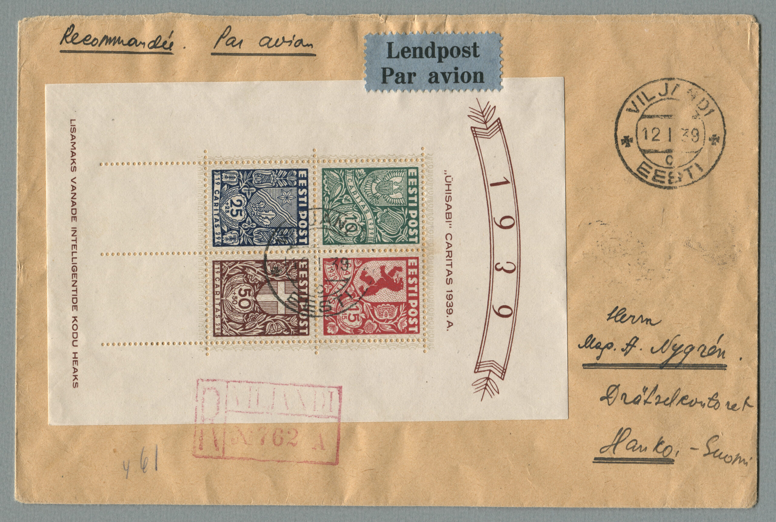 ERMi koguLennupostikiri Tallinnast 25.03.1939 Stockholmi.