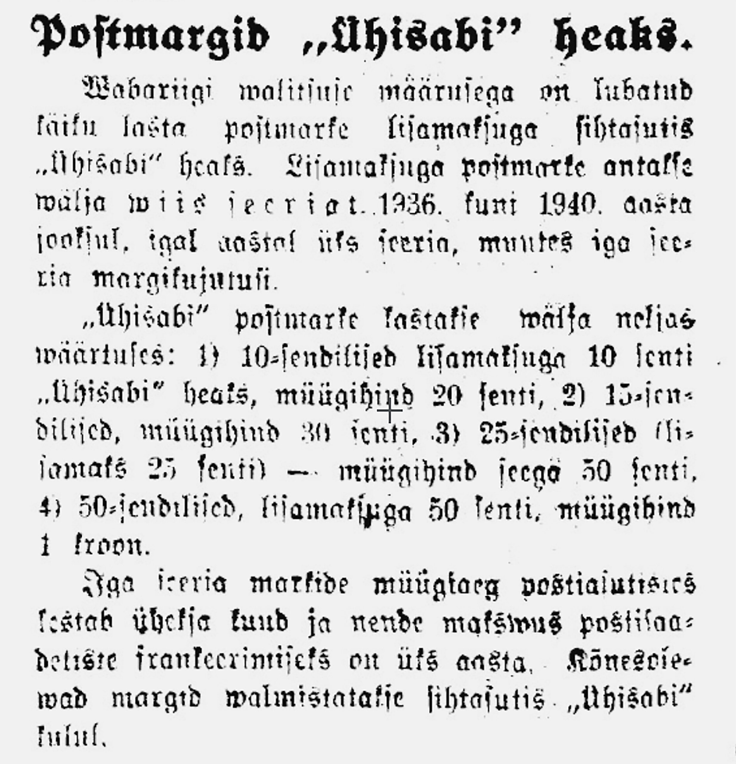 Margid olid müügil 1.02.–30.10.1936, postimaksevahendina kehtisid need kuni 31.01.1937.