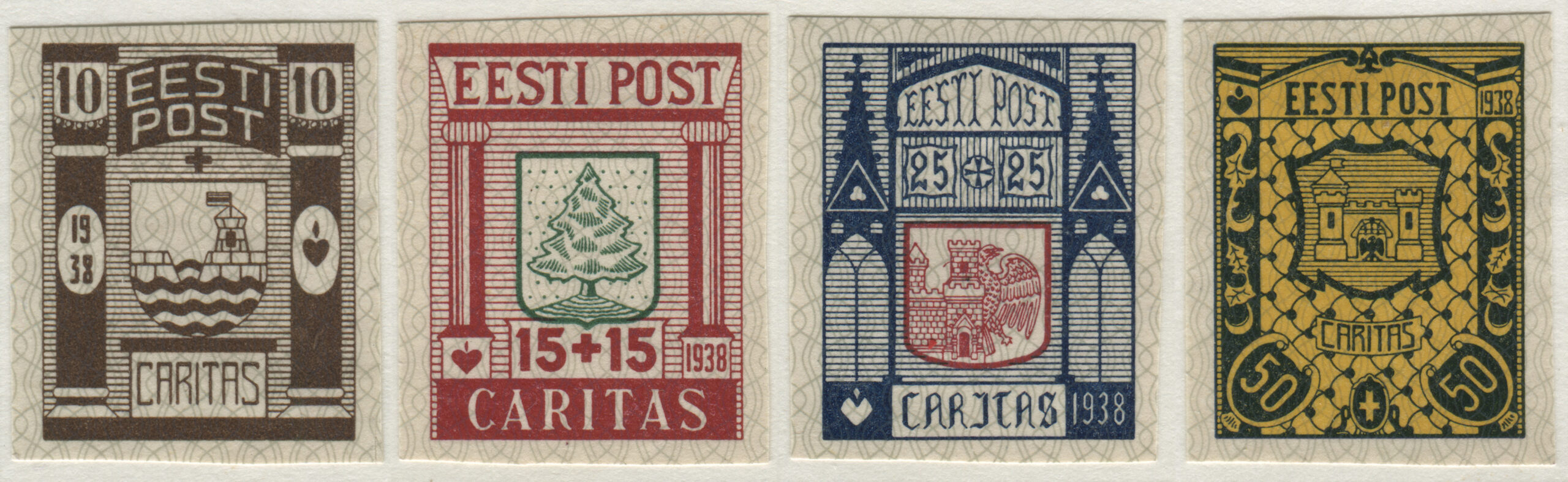 ERMi kogu1938. aasta Caritase sarja markide proovitrükid.