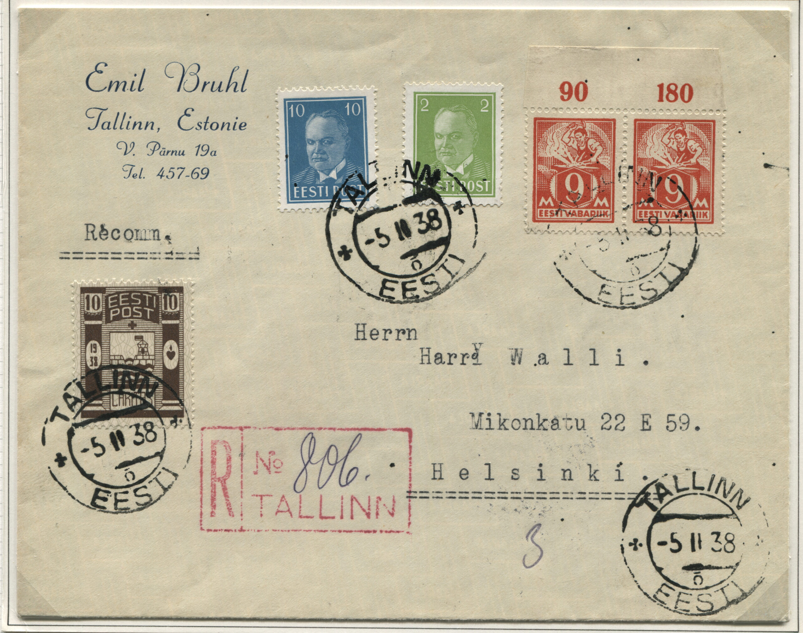 ERMi koguTähitud kiri Tallinnast 5.02.1938 Helsingisse 7.02.1938.