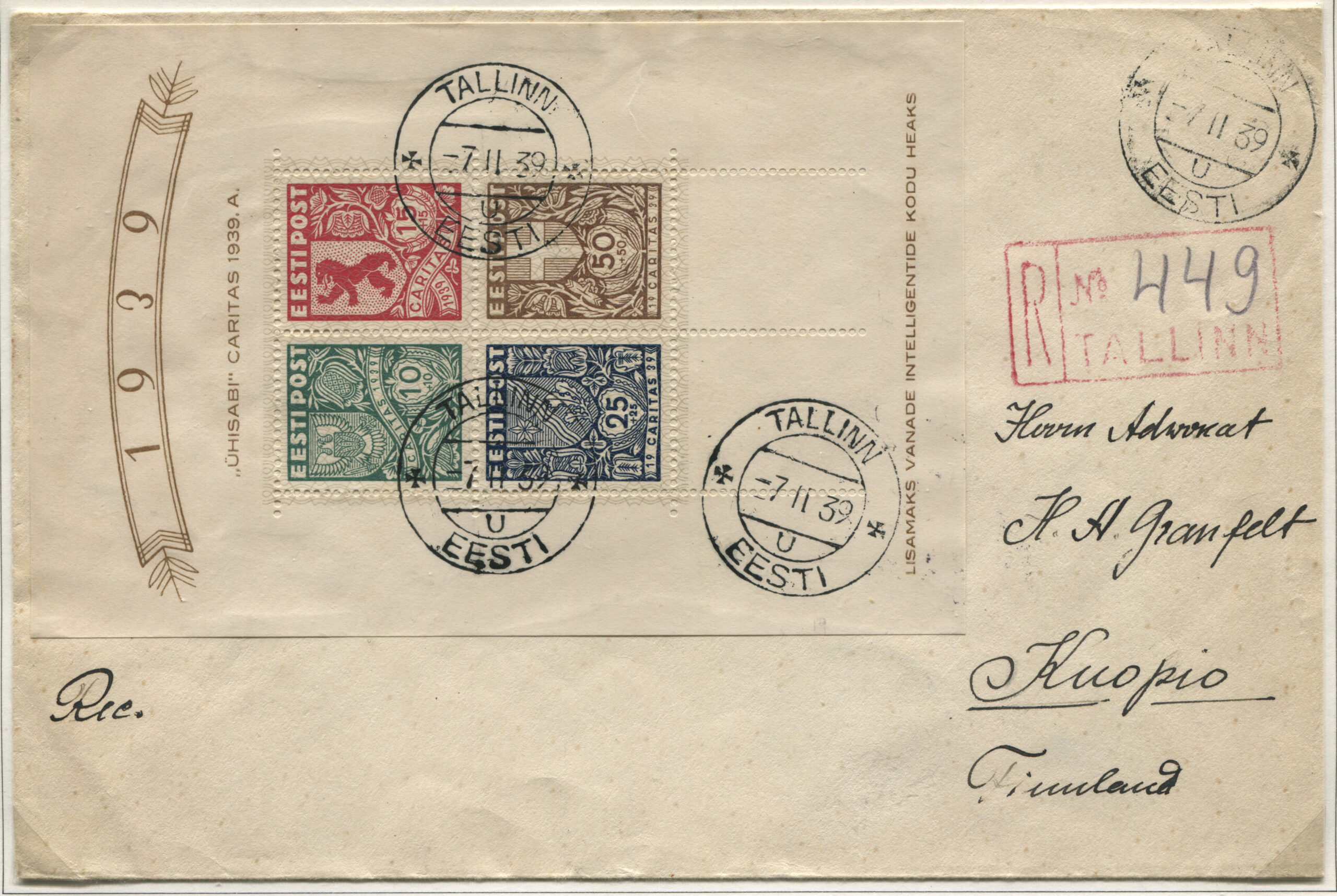 Tähitud kiri Tartust Tallinna, tempel „Tartu II AG, 19.09.1939“.