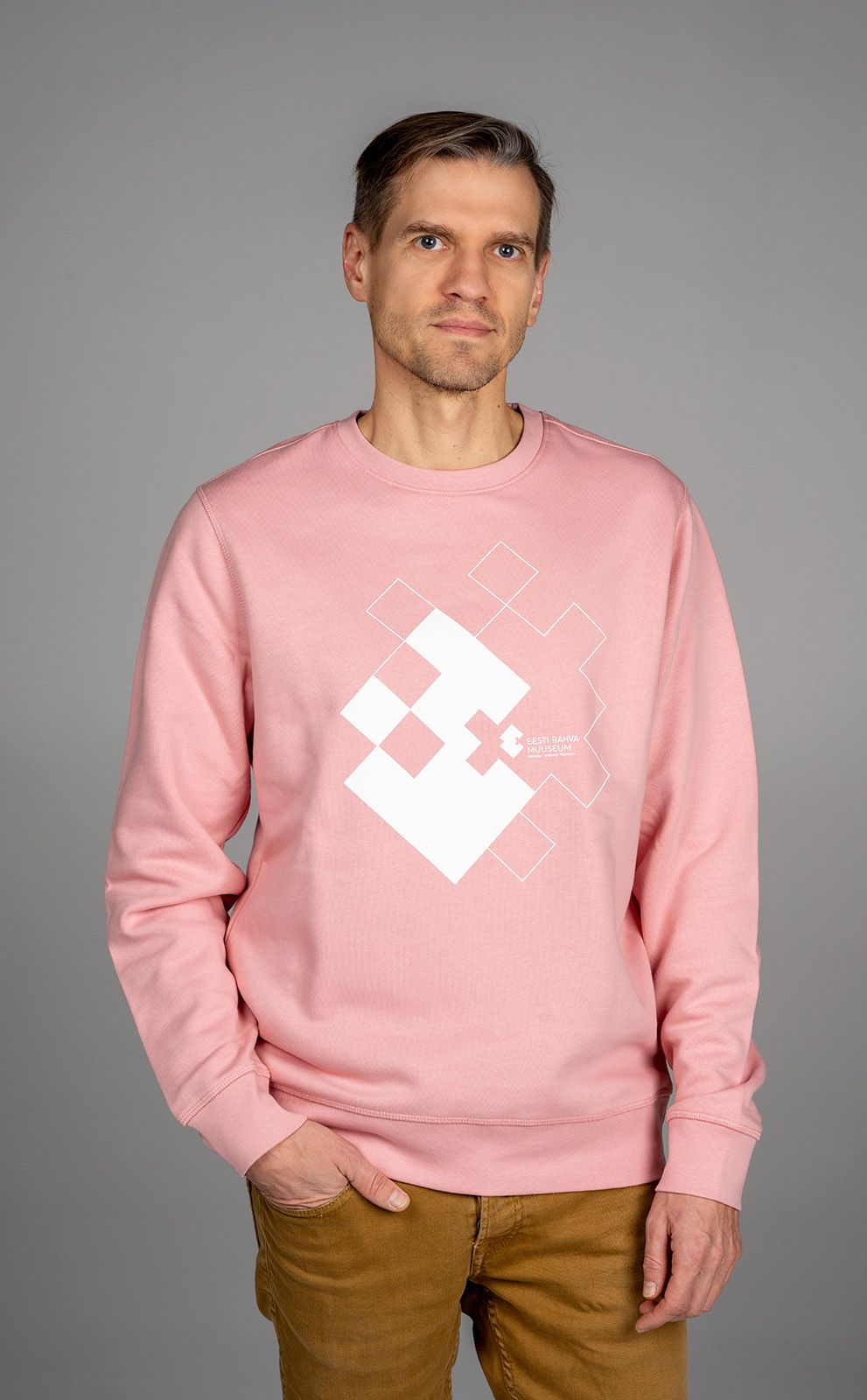 Eesti Rahva Muuseumi pusa on mõnusast pehmest ja kergelt sametisest kangast. Valmistatud 85 % orgaanilisest puuvillast ja 15 % taaskasutatud polüestrist.