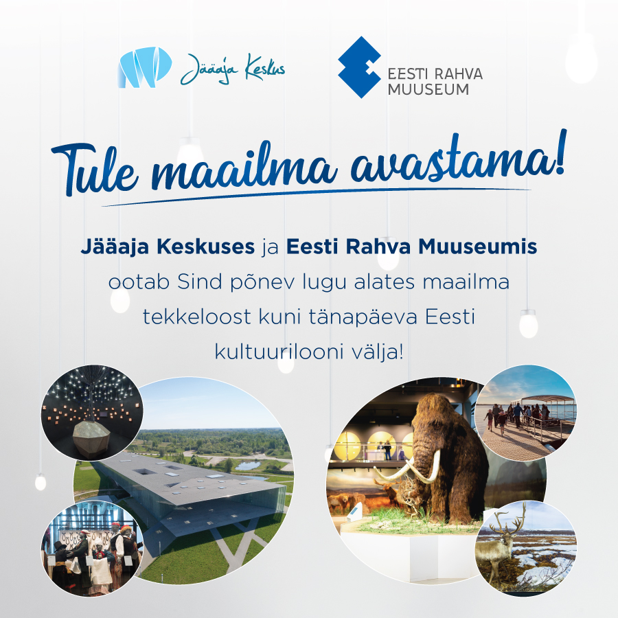 Jääaja Keskuses ja Eesti Rahva Muuseumis ootab Sind põnev lugu alates maailma tekkeloost kuni tänapäeva Eesti kultuurilooni välja!